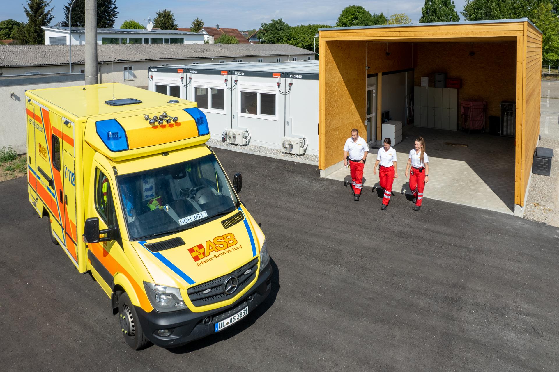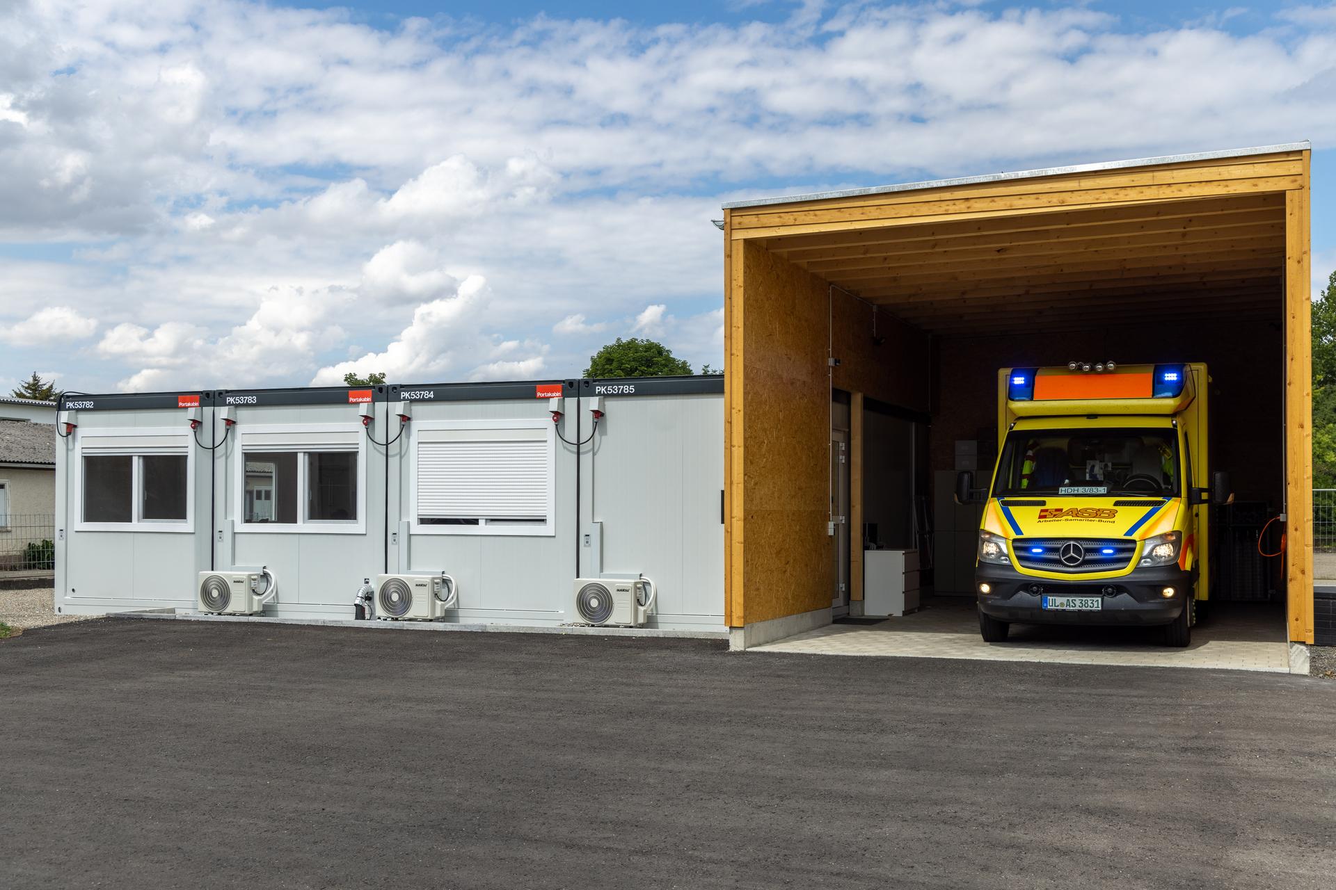 Der ASB Baden-Wűrttemberg e.V. benötigte eine mobile Rettungswache am Standort Sontheim/ Brenz für elf fest angestellte Mitarbeiter des Rettungsdienstes, darunter Notfallsanitäter, Rettungsassistenten und Rettungssanitäter.