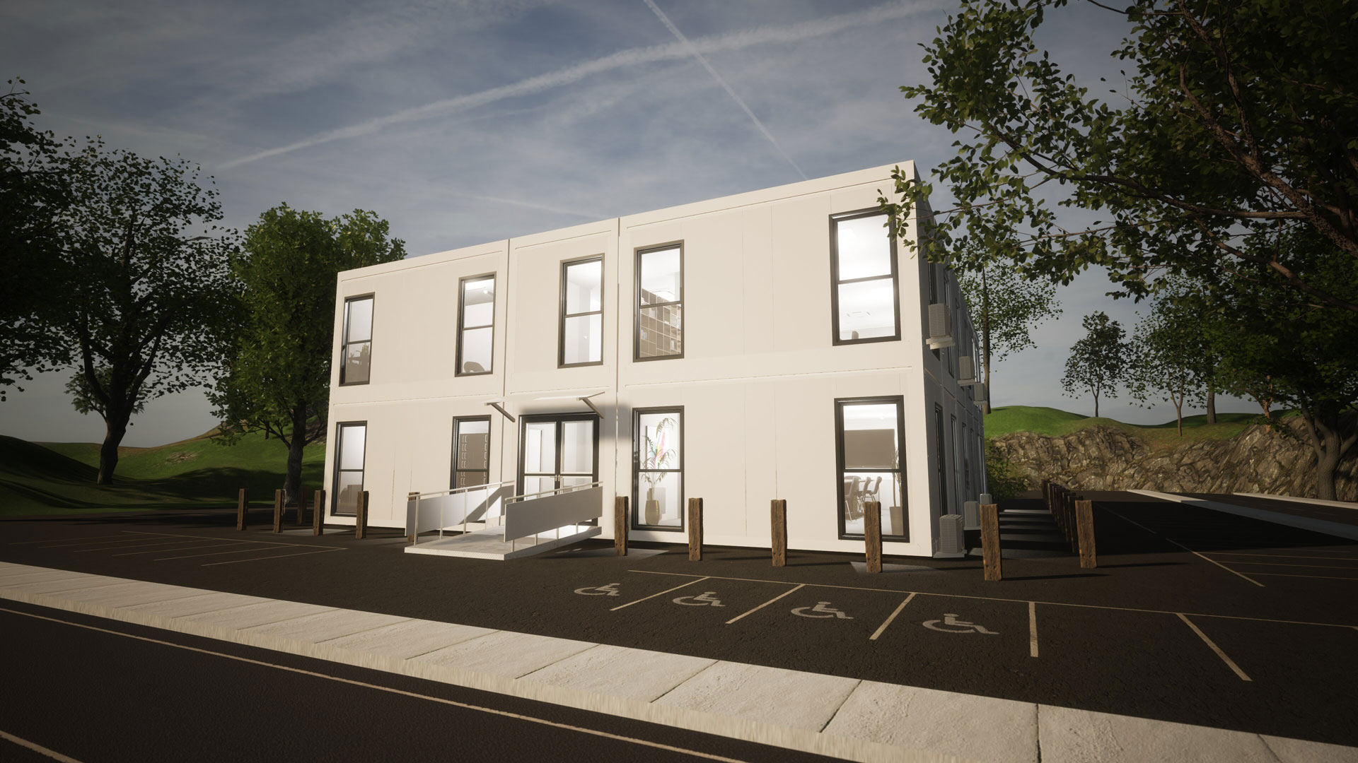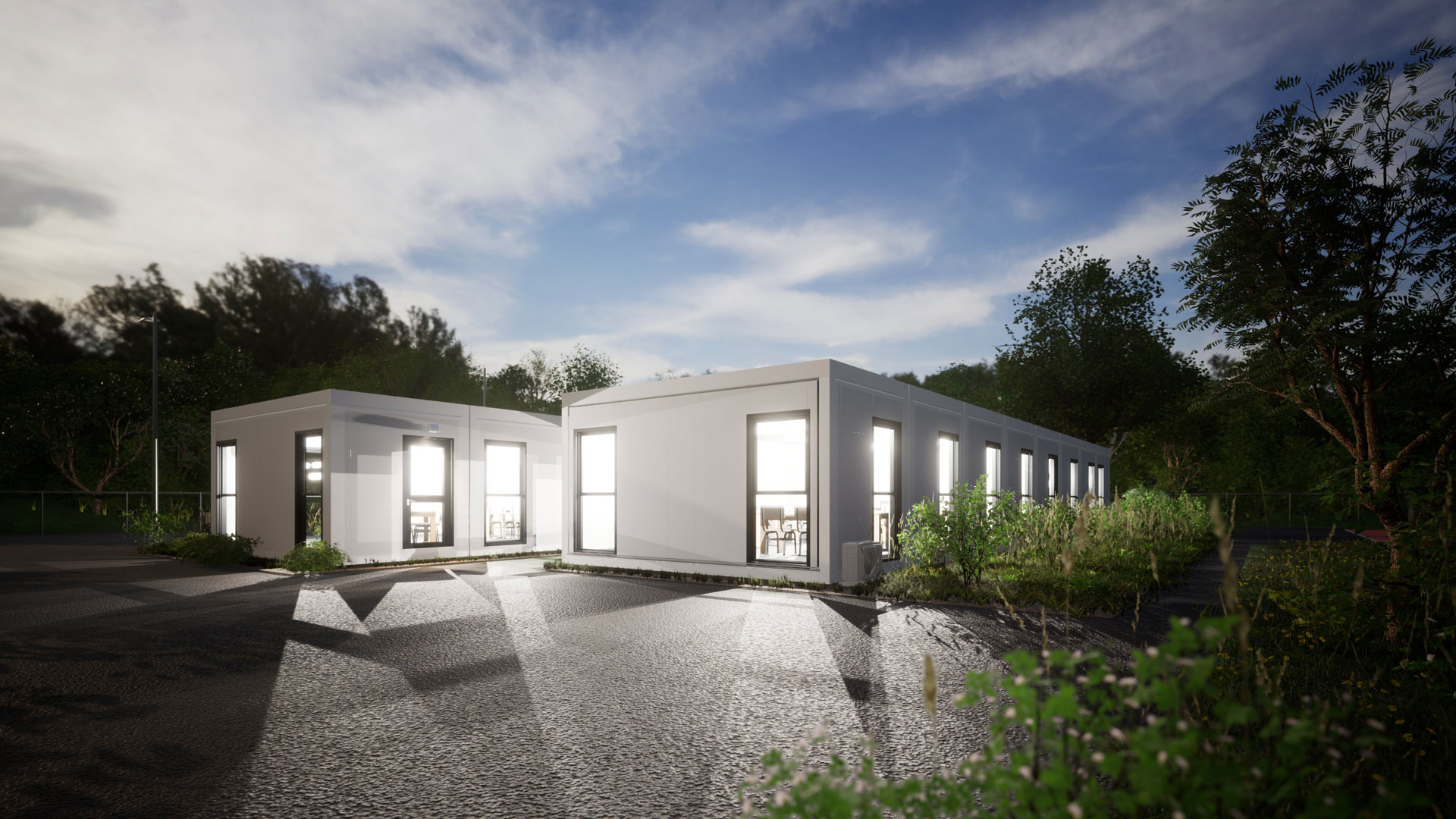 Das aus 16 Portakabin Alta-Modulen errichtete neue Firmengebäude, dass alle Anforderungen nach GEG 2020 erfüllt, wird mit einer Wärmepumpe betrieben und ist mit modernster Klima- und Heizungstechnik ausgestattet. Moderne und energieeffiziente LED-Beleuchtungssysteme, unterschiedliche Bodenbeläge, Fassaden und bodentiefe Fenster sorgen für den ultimativen Wohlfühlfaktor.
