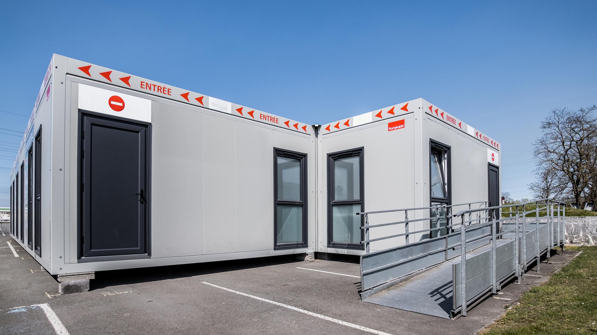 Près de 200 m2 d'espace ont été assemblés dans la semaine suivant la réception de la commande. Le bâtiment a une disposition en L avec une rampe d'accès pour les personnes handicapées, la climatisation et un habillage extérieur en vinyle à la demande du client. Le bâtiment est conforme aux normes ERP pour les établissements de santé et dispose également de grandes fenêtres oscillo-battantes pour faciliter la ventilation.