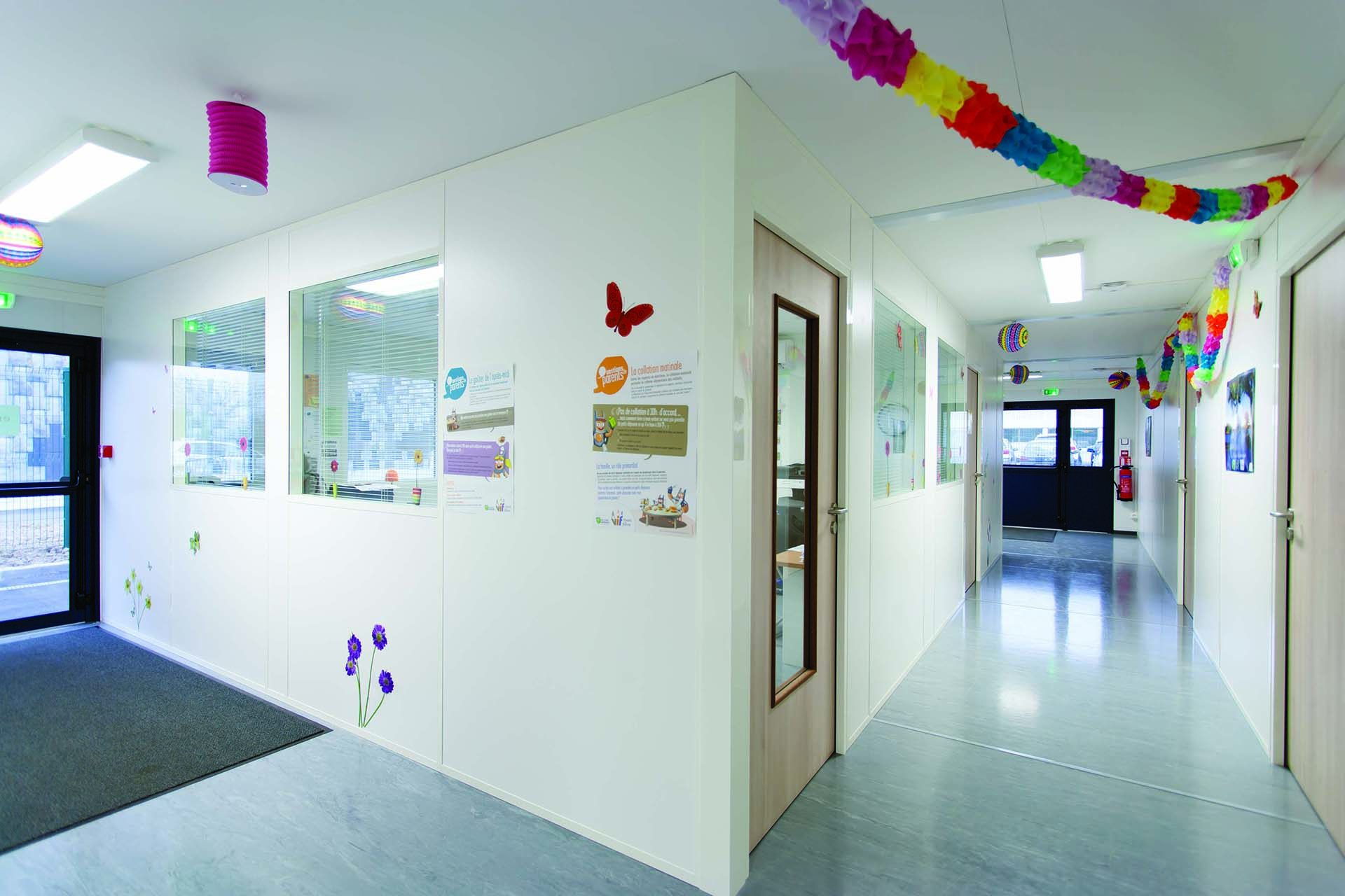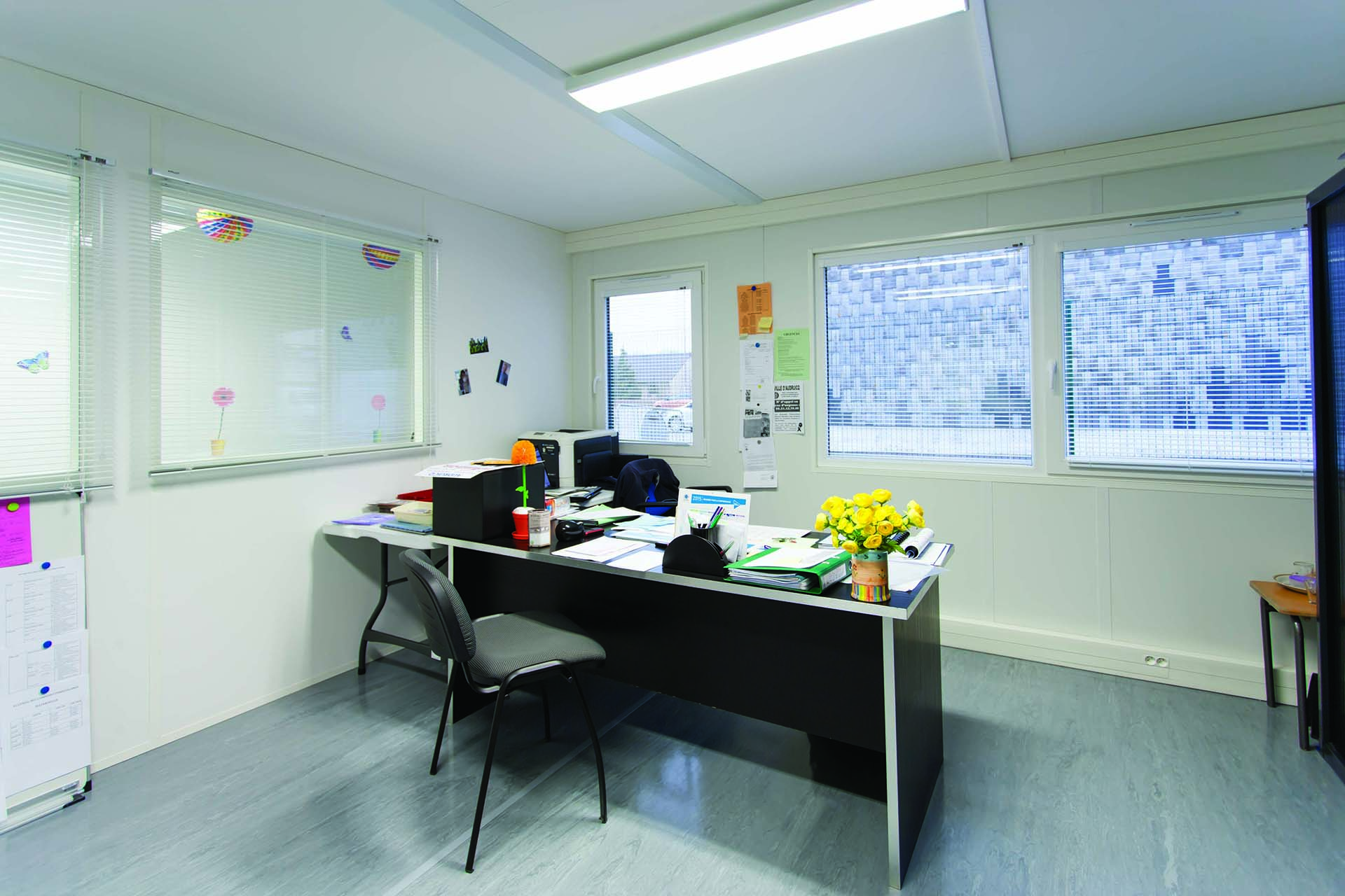 L’adjointe au maire chargée de l’enfance et de la jeunesse recherchait une solution rapide pour que leurs enfants ne soient pas cantonnés toute la journée dans les mêmes locaux. Là où un bâtiment traditionnel aurait nécessité trois ans de construction, il a fallu moins de cinq mois pour ouvrir les portes d'un entre périscolaire signé Portakabin. Une surface de plus de 370m² habillée de panneaux architecturaux naîtra ; composant un bardage multicolore gai et esthétique.