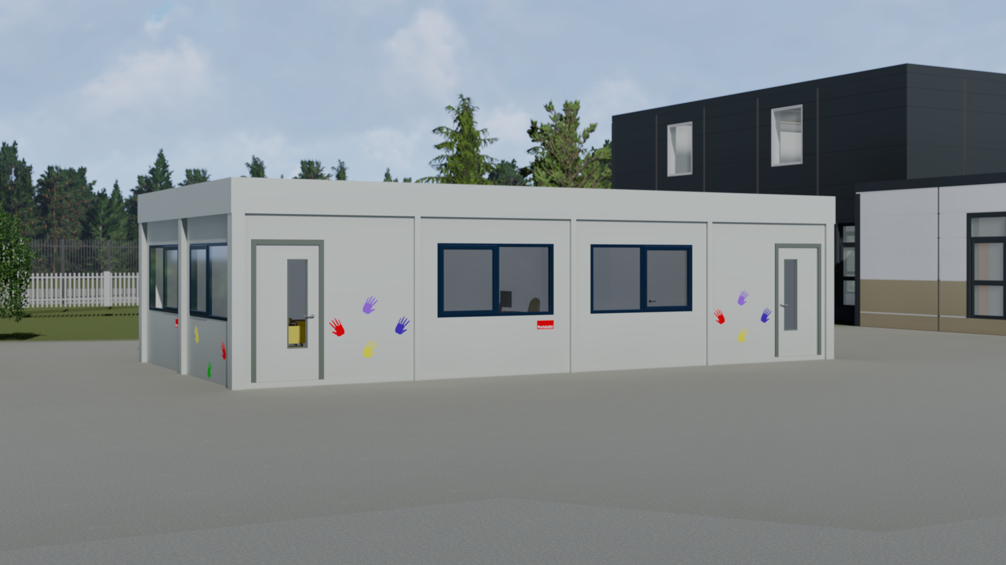 Conformément aux recommandations du système éducatif national, votre salle de classe est baignée de lumière naturelle, opérationnelle en un jour et disponible dans la taille Maternelle (55 m2) ou Primaire (70 m2).