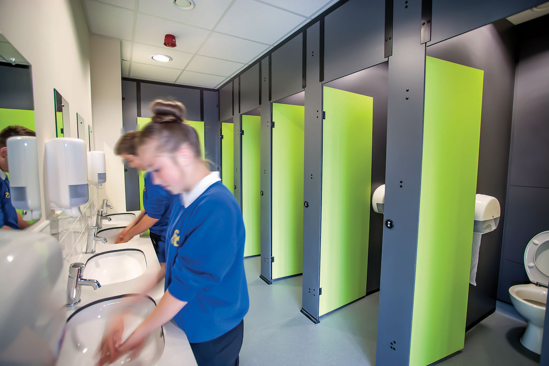 They arrived with high-performance concrete floors pre-installed throughout to deliver superior acoustics and the robust finish required for the demanding secondary school environment.