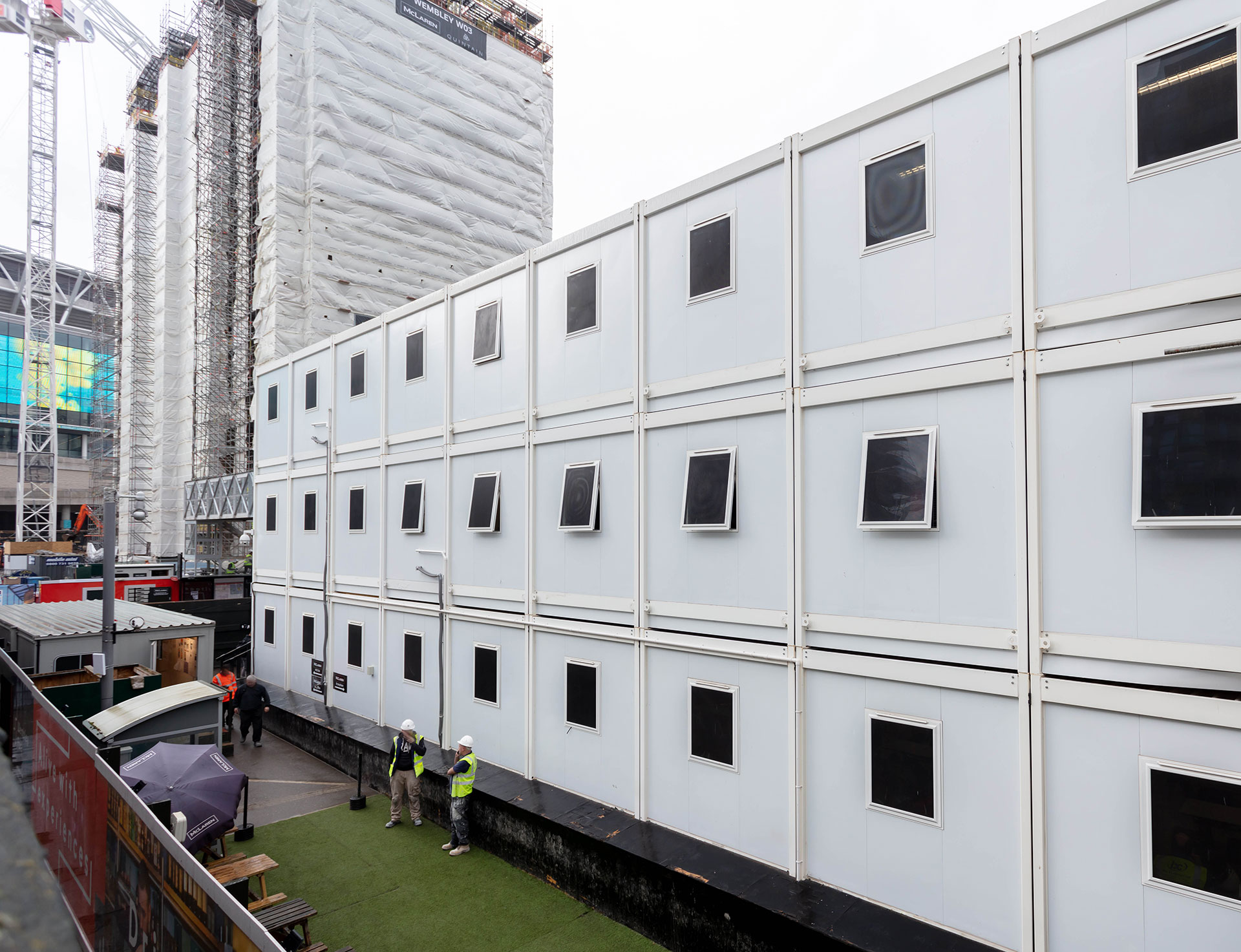 After McLaren was awarded three building contracts by developer Quintain for the Wembley Park development plot, construction workers on the site required the highest quality site accommodation. With two buildings containing 490 build-to-rent units being built, office and welfare space for the workers would be required for almost 120 weeks.