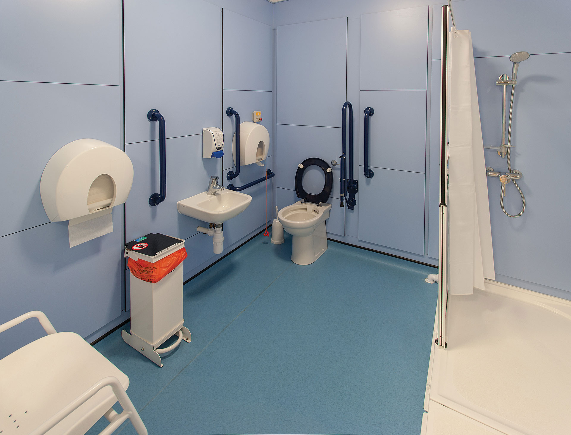 • Shower compartments with integral changing area and seat, providing privacy and plenty of space