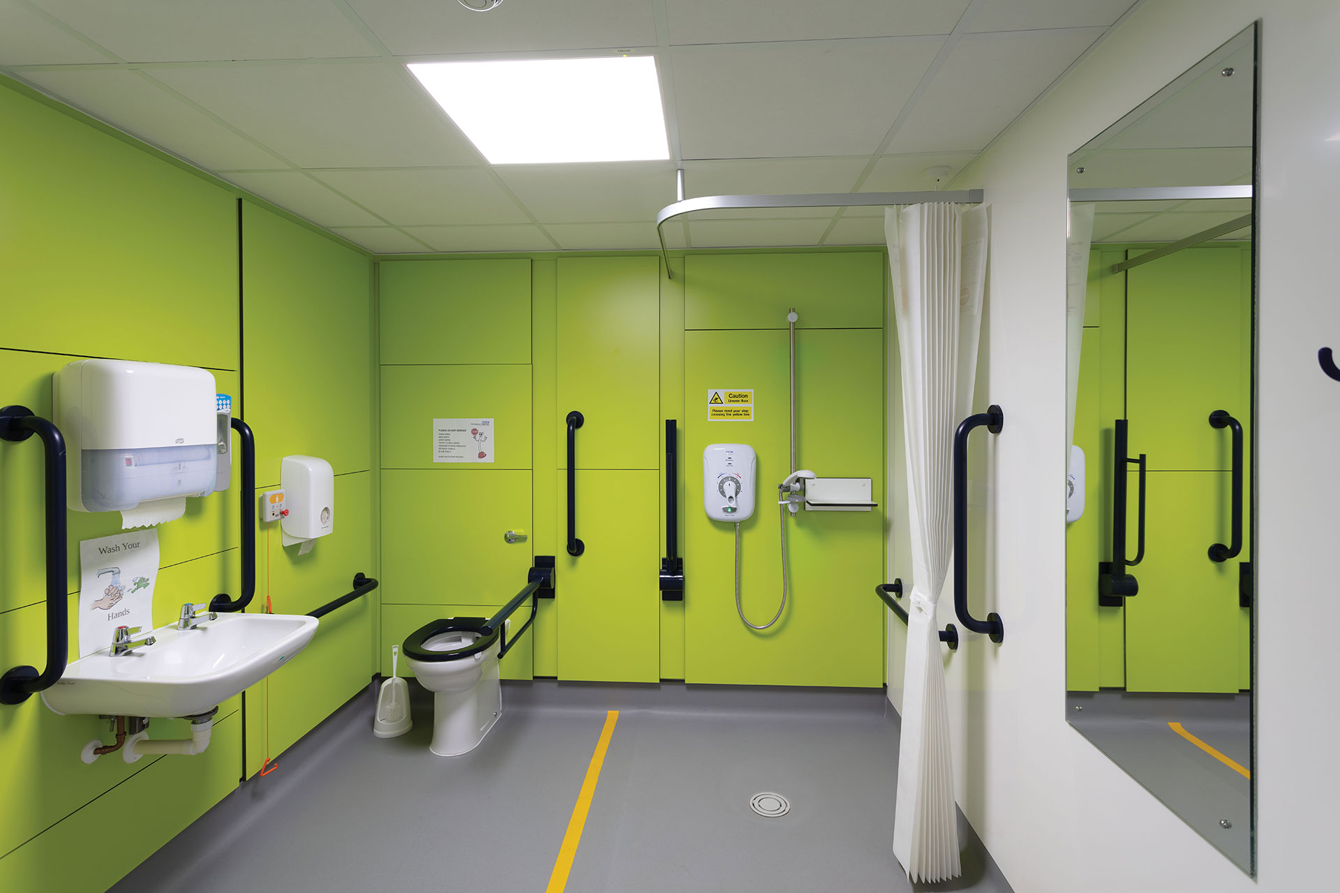 • Specially designed changing rooms available with large communal changing and shower areas, bench seating, coat hooks and toilet cubicles