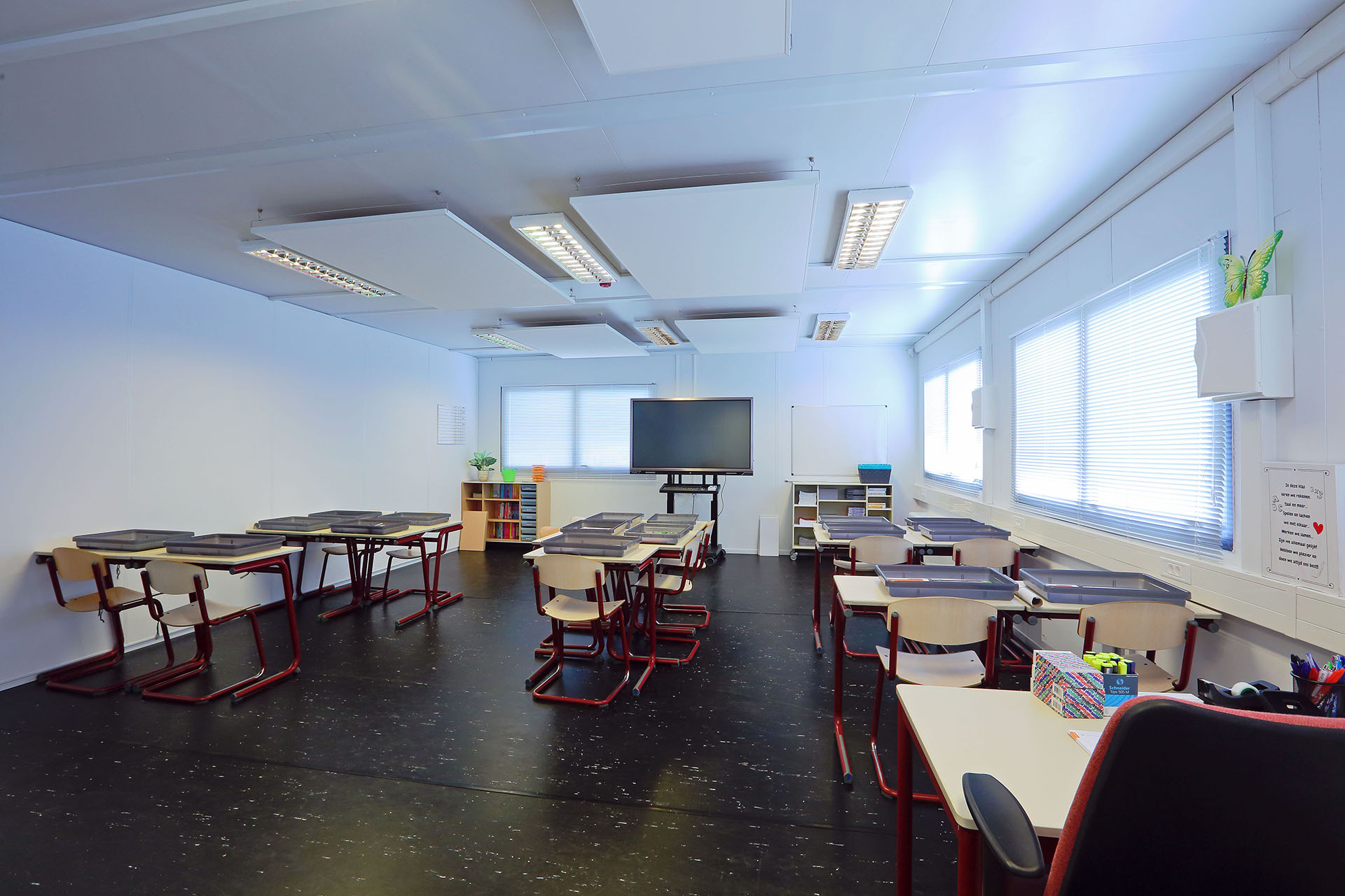 Drie lokalen voor 90 leerlingen, voorzien van goede akoestiek en ventilatie voor het Melanchthon Bergschenhoek.